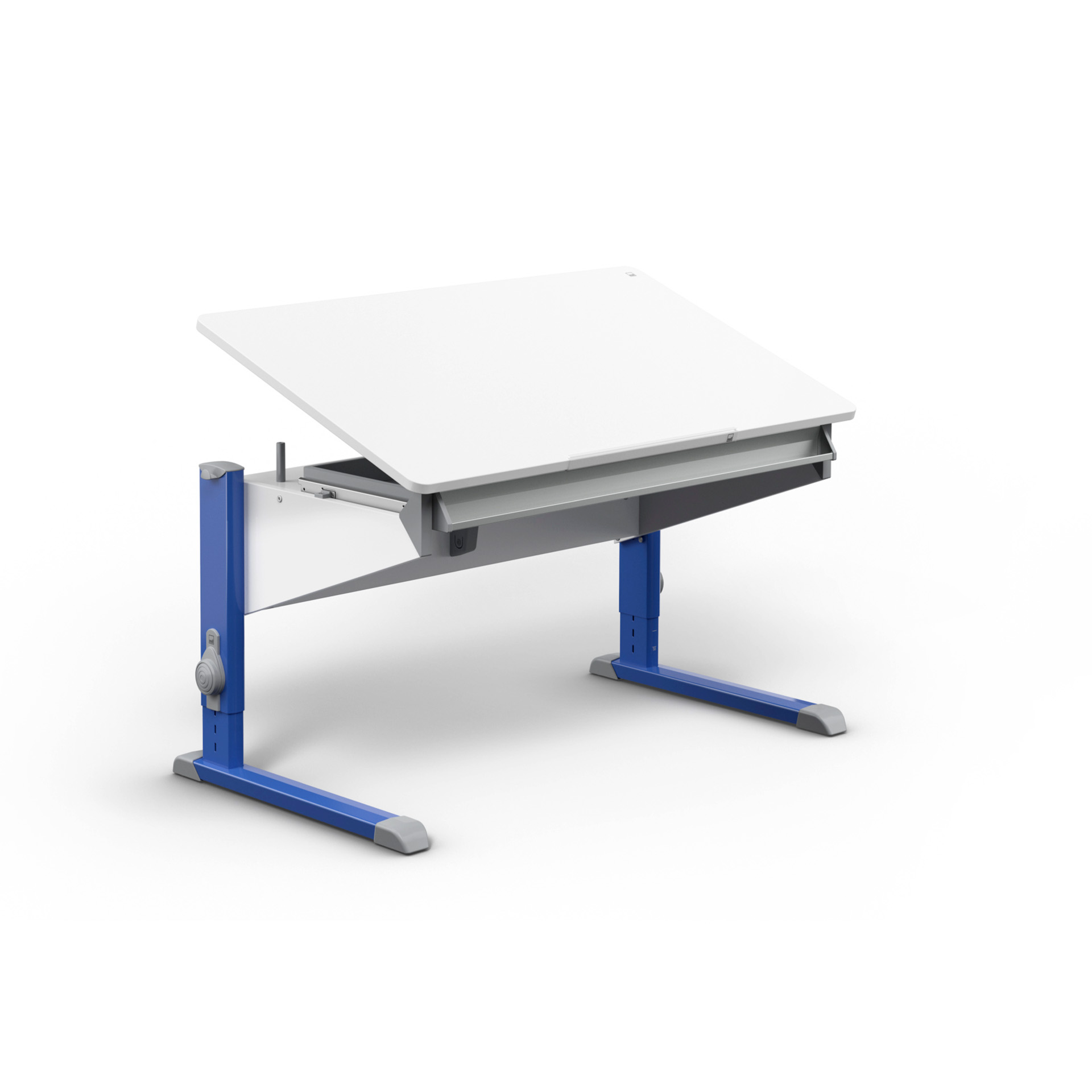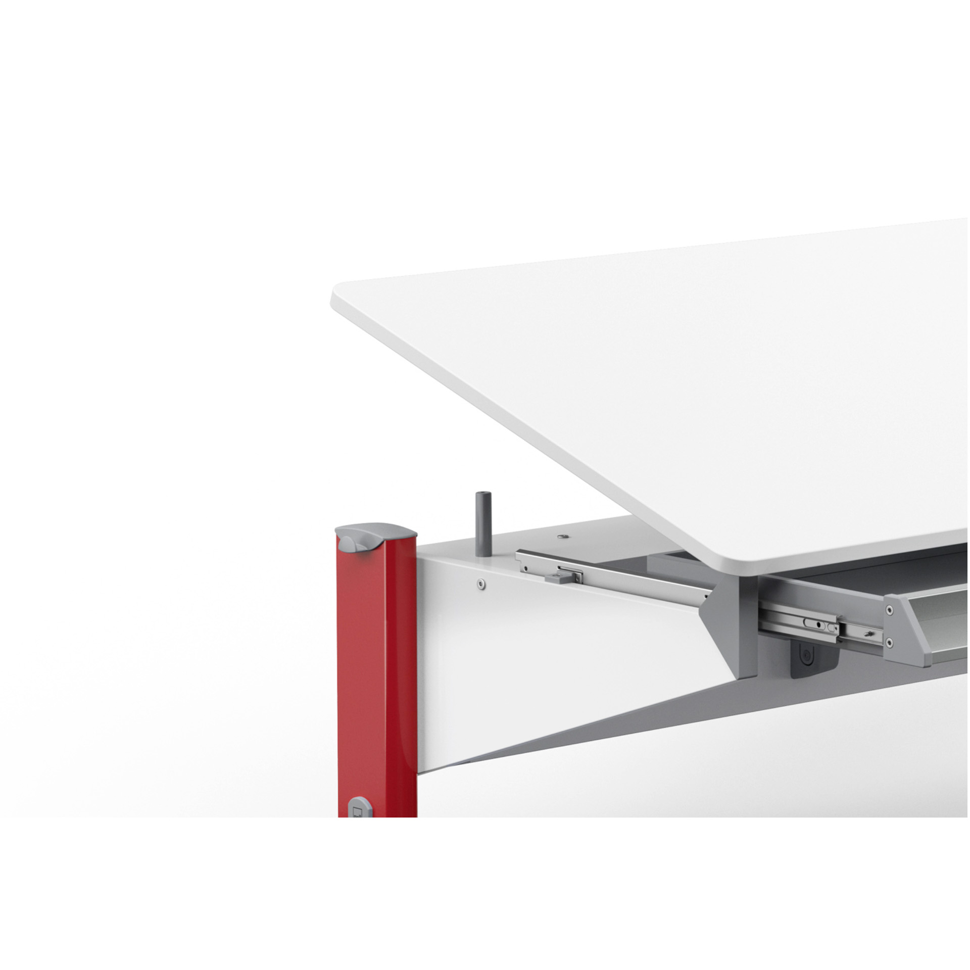Die Tischplatte des Bandit lässt sich dank der integrierten Federunterstützung ganz einfach in sechs Stufen neigen. So einfach, wie Kinder die Tischplatte verstellen können.