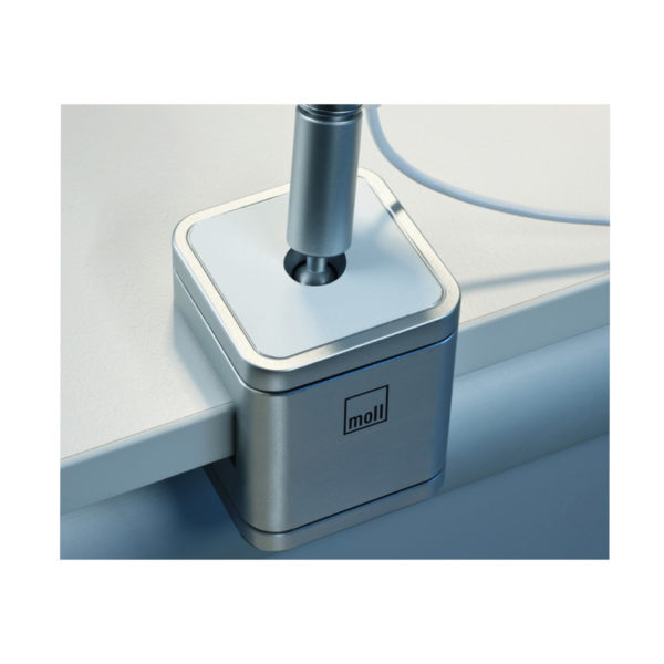 The clamping foot holds the moll Flexlight securely to the desk without taking up much space, even on a tilted desktop (for desktop thicknesses from 13 to 23 mm). The positioning is arbitrary: left and right-handed people always write without shadows.