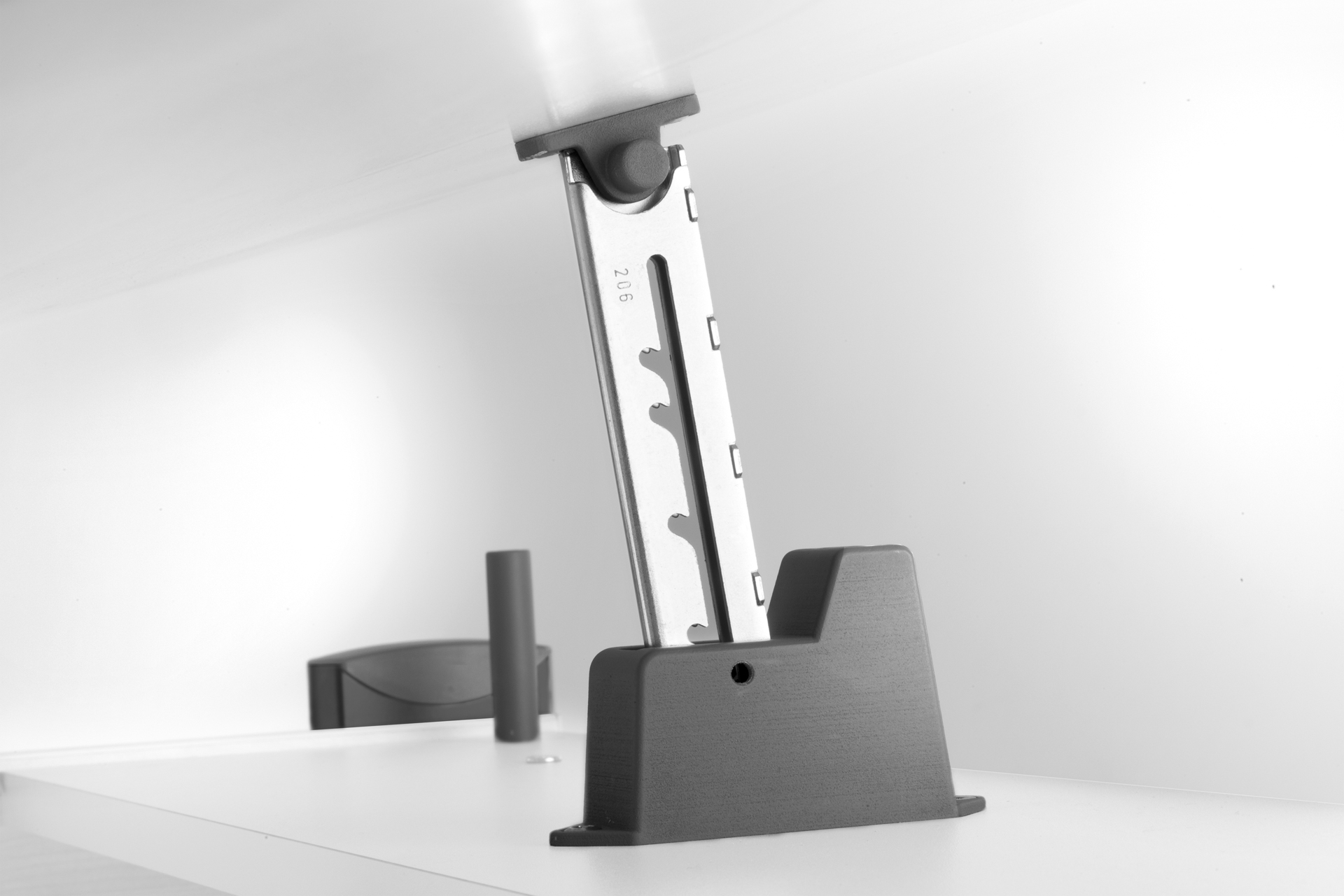 These include the practical bag hook, the transparent bookend and a anti-slip device: this way, books and co. always stay in place when the desktop is tilted.