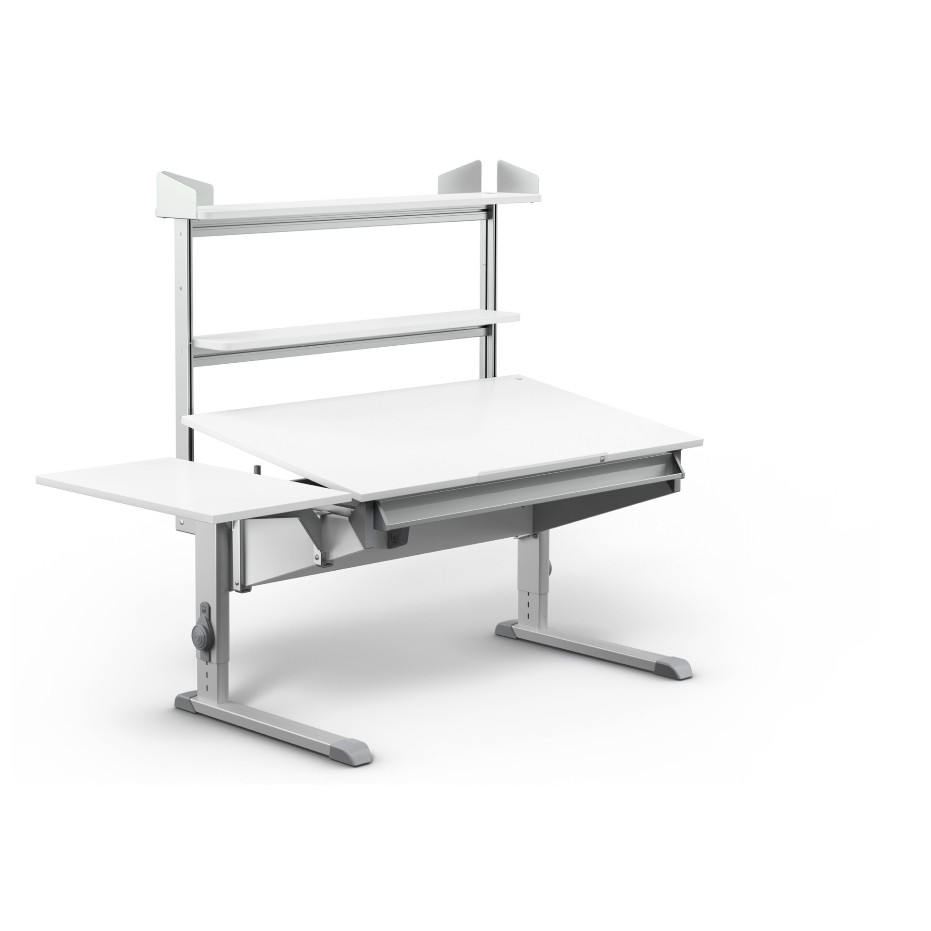 Was macht einen guten Kinderschreibtisch aus? Stil, Charakter, gute Verarbeitung, Ergonomie und Sicherheit. Der moll Sprinter CP verfügt über all diese Eigenschaften und lässt sich individuell an die Anforderungen seines Nutzers anpassen. Ob als Kompaktvariante im kleinen Kinderzimmer oder als Schreibtisch mit geteilter Tischplatte, ergänzt durch die optionale Seitenplatte – der Sprinter von moll vereint Raffinesse und schlichtes Design in Perfektion.