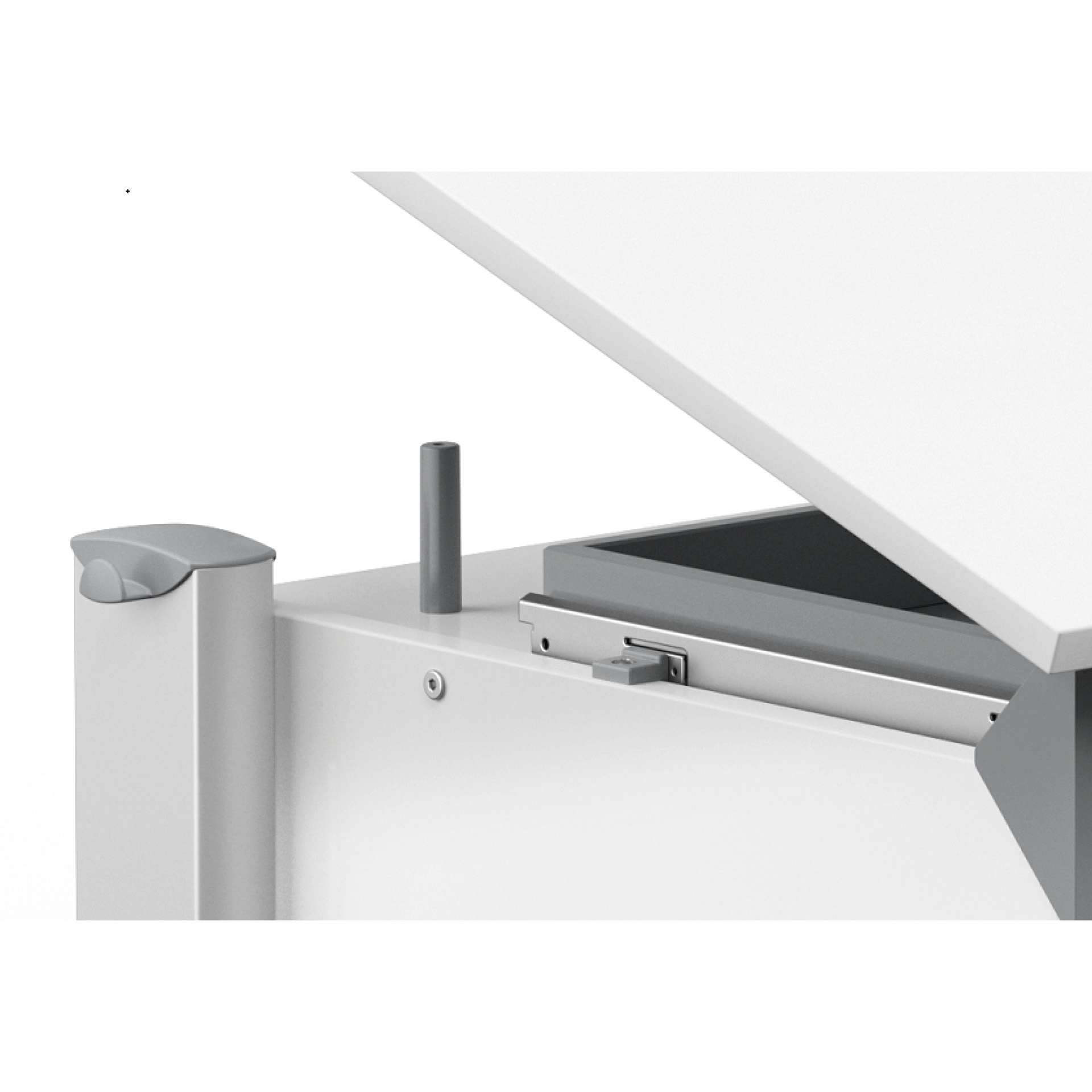 Die Tischplatte lässt sich dank der integrierten Federunterstützung ganz einfach in sechs Stufen neigen. So einfach, wie Kinder die Tischplatte verstellen können.