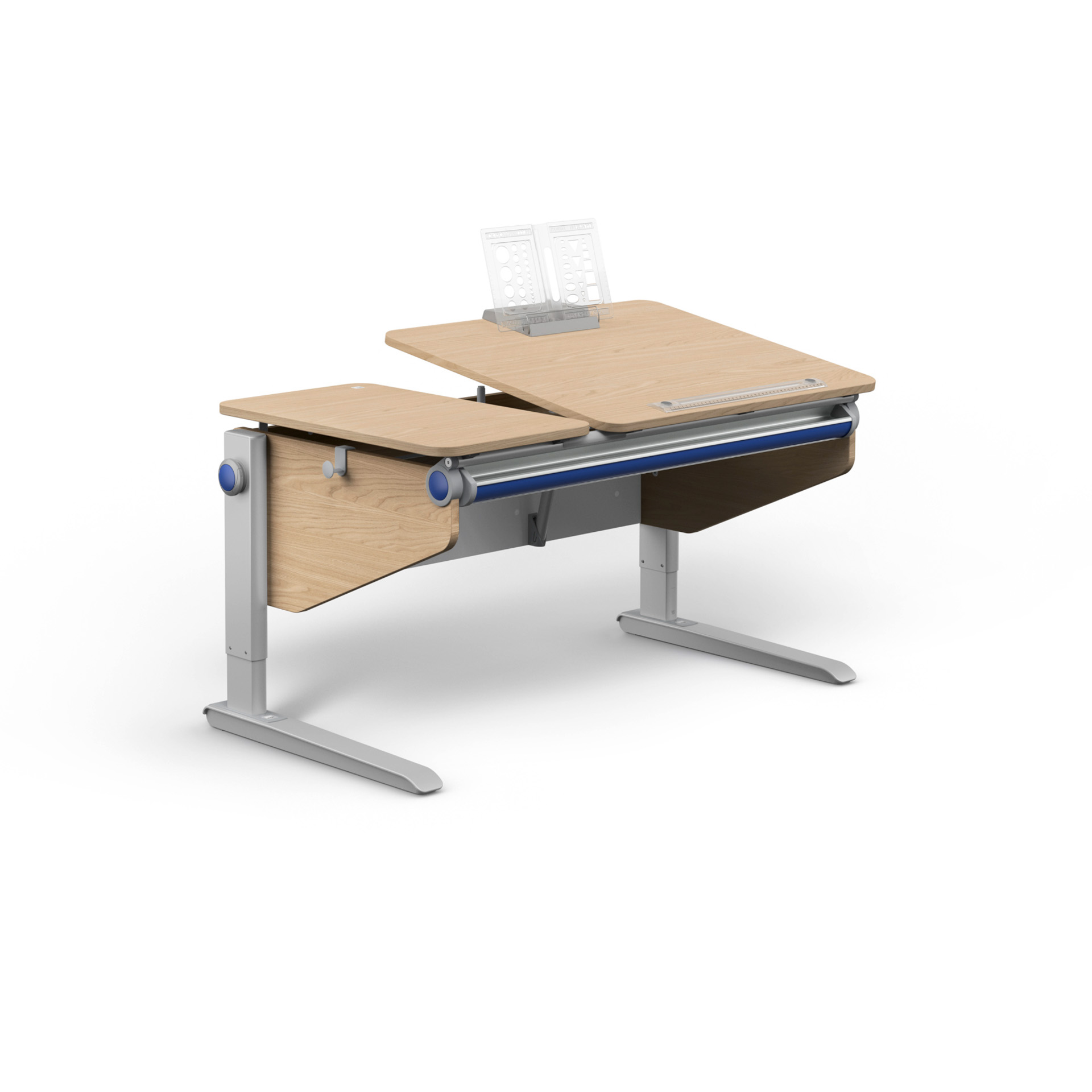 Bei Kindermöbeln sind sie nur dann sinnvoll, wenn Kinder sie selbst bedienen können: moll ermöglicht dies beispielsweise durch die Schrägstellung der Tischplatte.Stufenlos und federunterstützt nach oben. Gebremst nach unten mit einstellbarer Senkbremse.